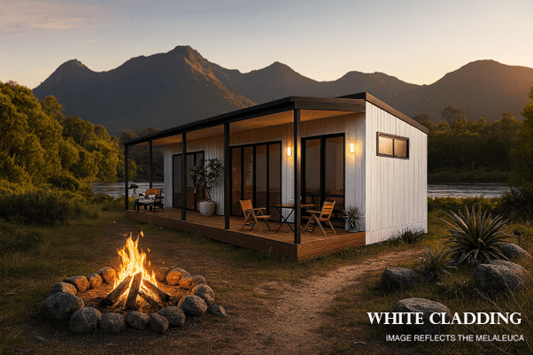 Melaleuca blends comfort and versatility with two spacious bedrooms, a generous kitchen, and cosy fireplace. With raked ceilings, a huge covered deck, and all-season efficiency from double glazing and thermal floors, it’s perfect as a family home or adaptable granny flat — designed for every lifestyle.