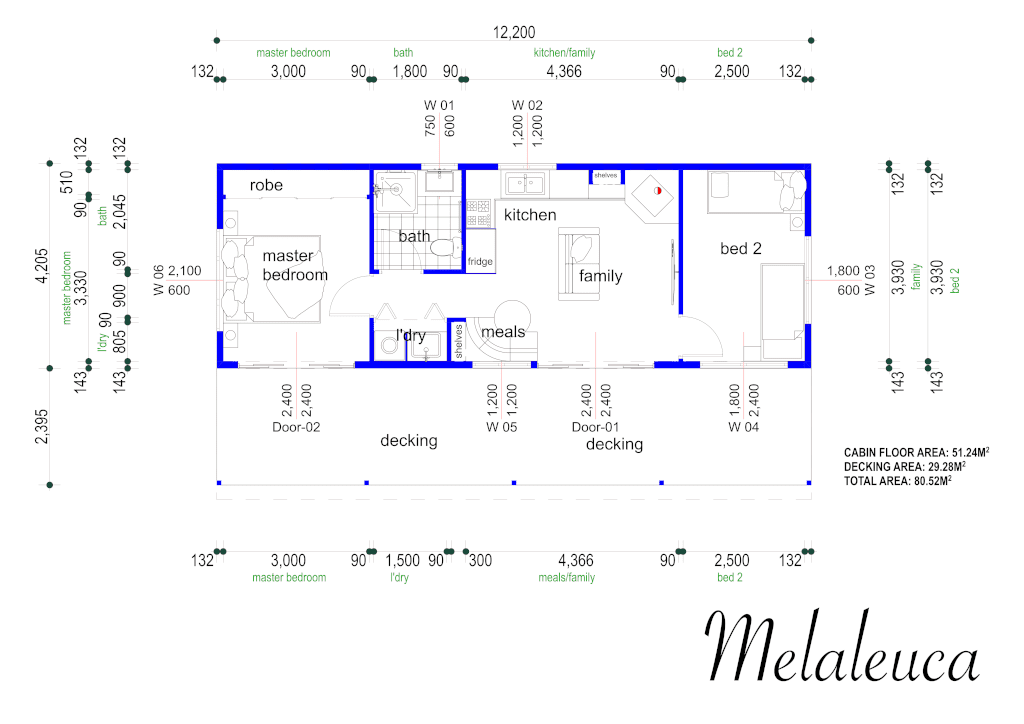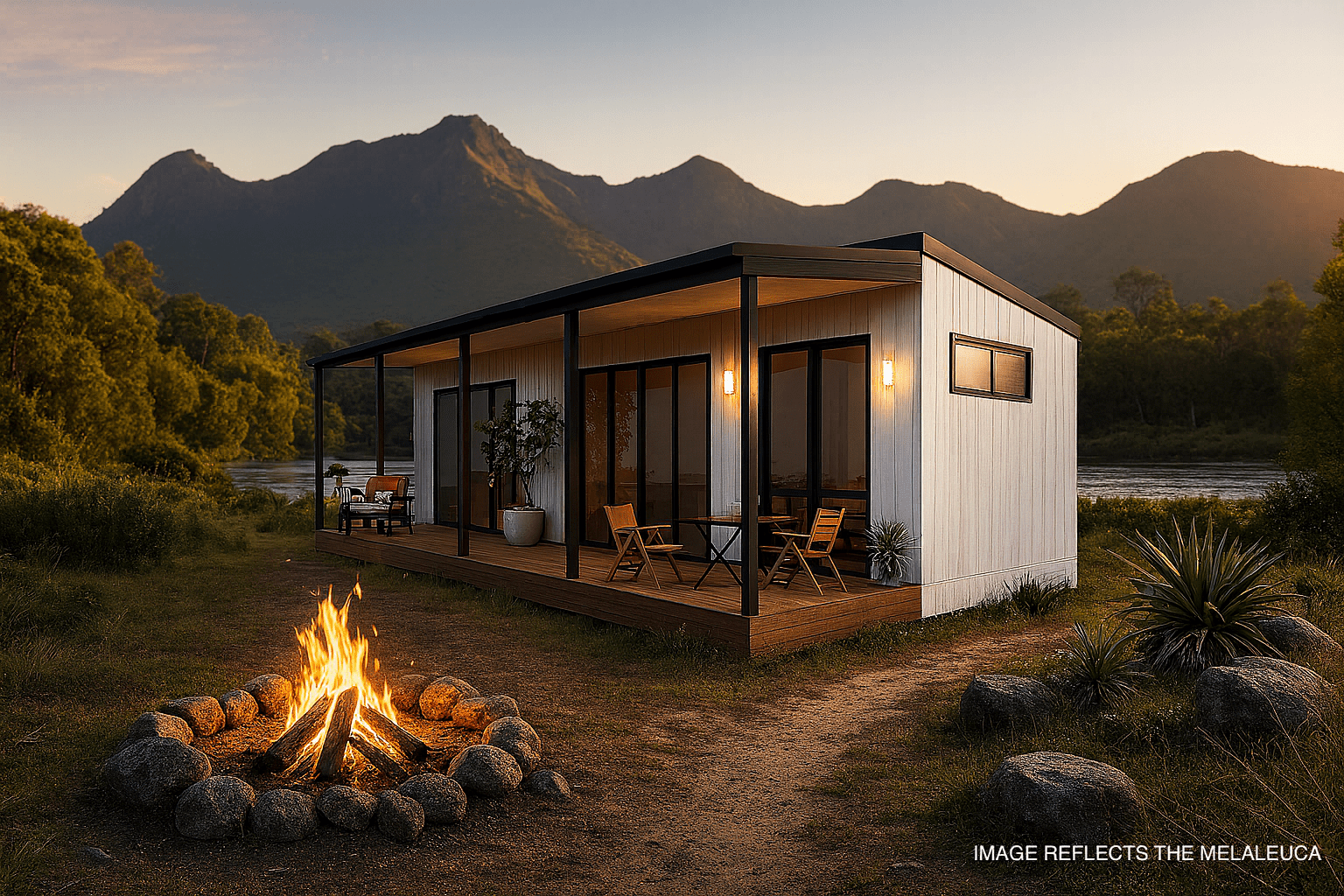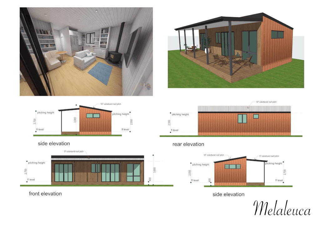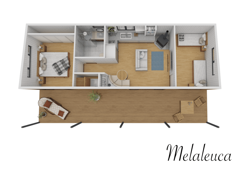 Melaleuca blends comfort and versatility with two spacious bedrooms, a generous kitchen, and cosy fireplace. With raked ceilings, a huge covered deck, and all-season efficiency from double glazing and thermal floors, it’s perfect as a family home or adaptable granny flat – designed for every lifestyle.