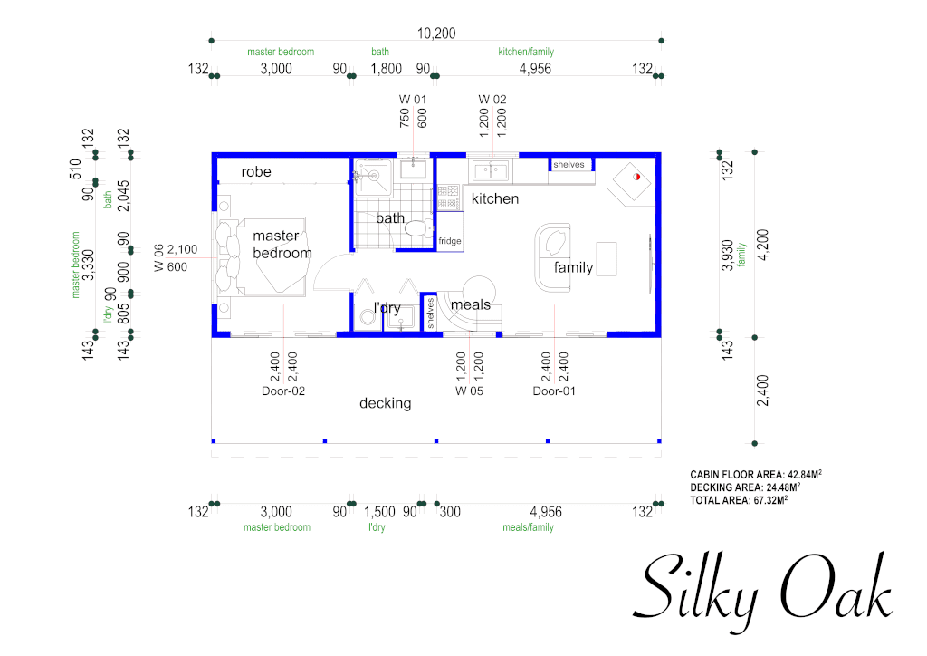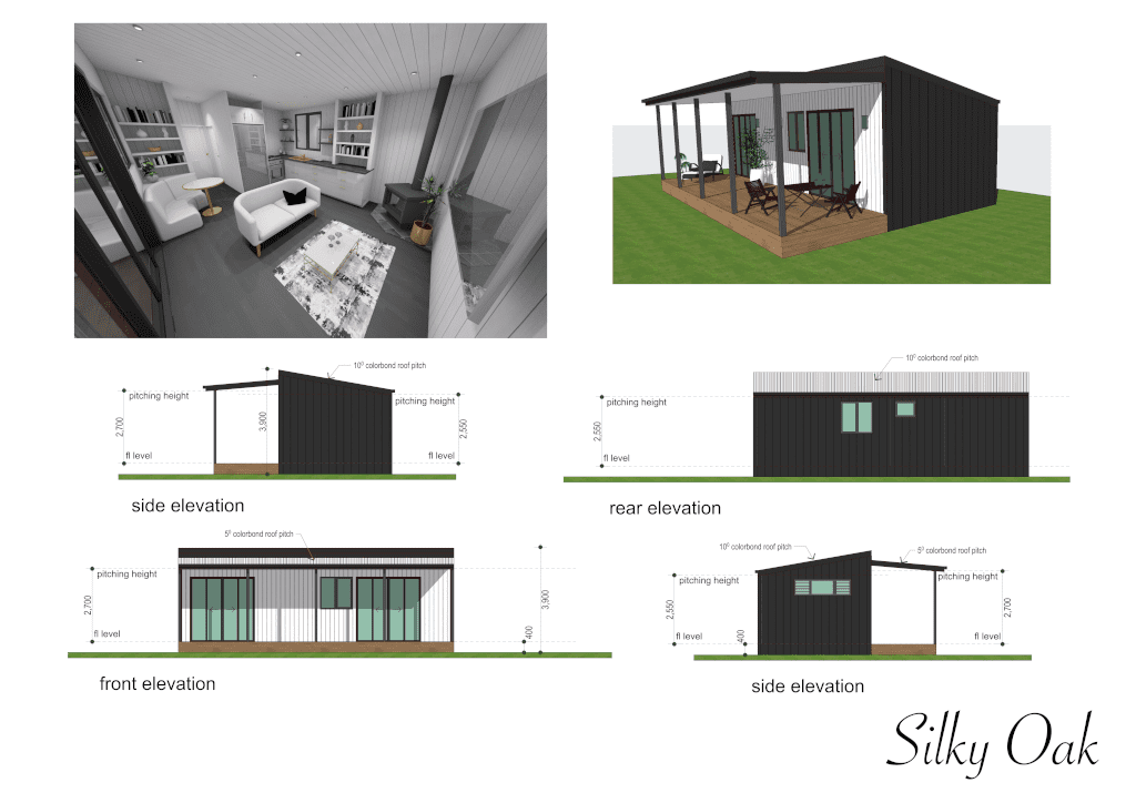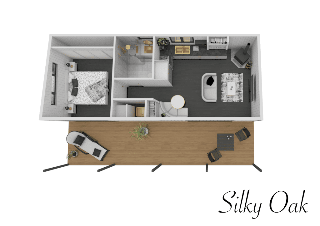 The Silky Oak is a cleverly designed one-bedroom cabin, perfect as a retreat for parents or independent living for adult children.  Versatile and comfortable, it’s ideal for living or as a smart opportunity for extra income.